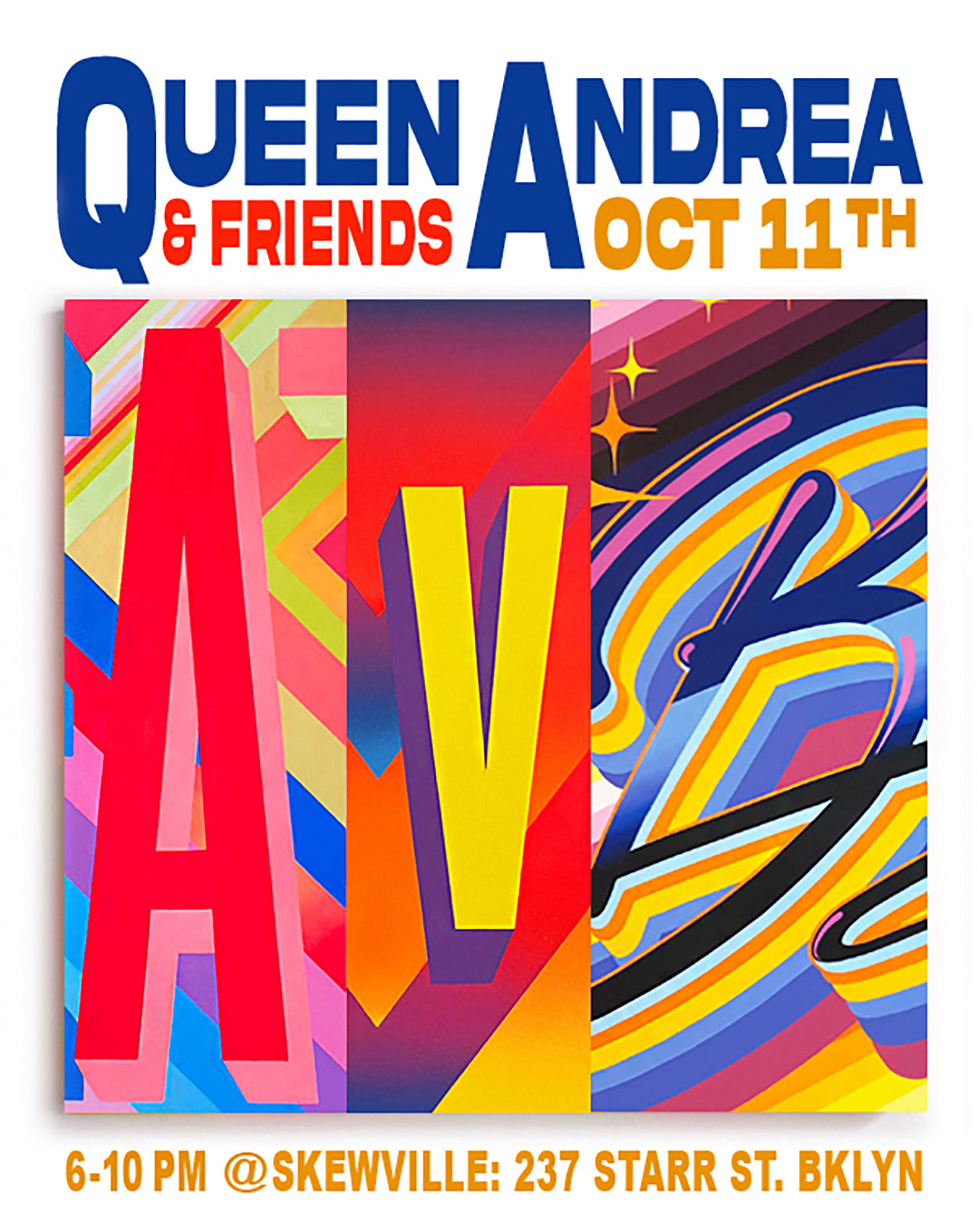 Save thee Date: Oct 11th 6-10 PM. We are excited to present "Queen Andrea & Friends" featuring work From Lady Aiko And MRS. A must see powerhouse trio show of New Yorks Finest.