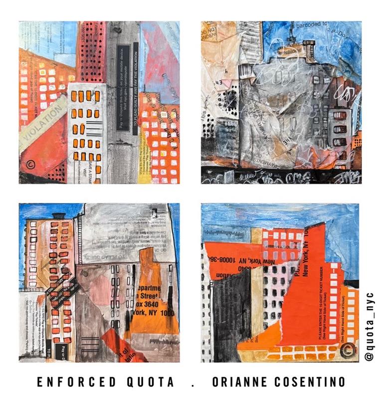In her show, Enforced Quota, Orianne challenges you to see the beauty in a New York parking ticket. She collected the orange slips for over a decade and converted them into works of art.