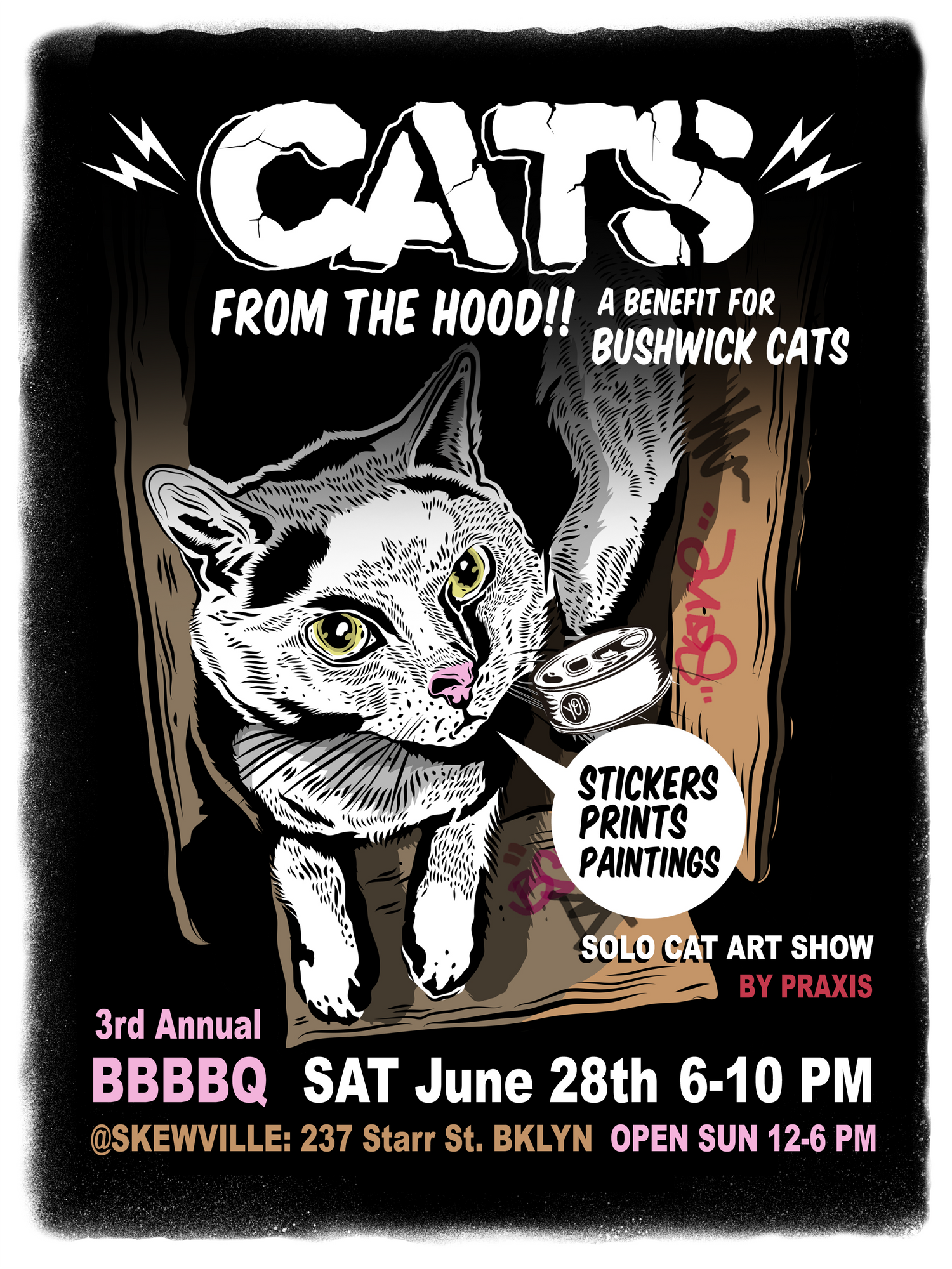 This one weekend show by Praxis is a benefit to raise money and awareness of the cat rescue group Bushwick Street Cats. 20% of sales will be matched and donated to help continue their amazing rescue work for the cats living on the streets of Bushwick and neighboring areas.