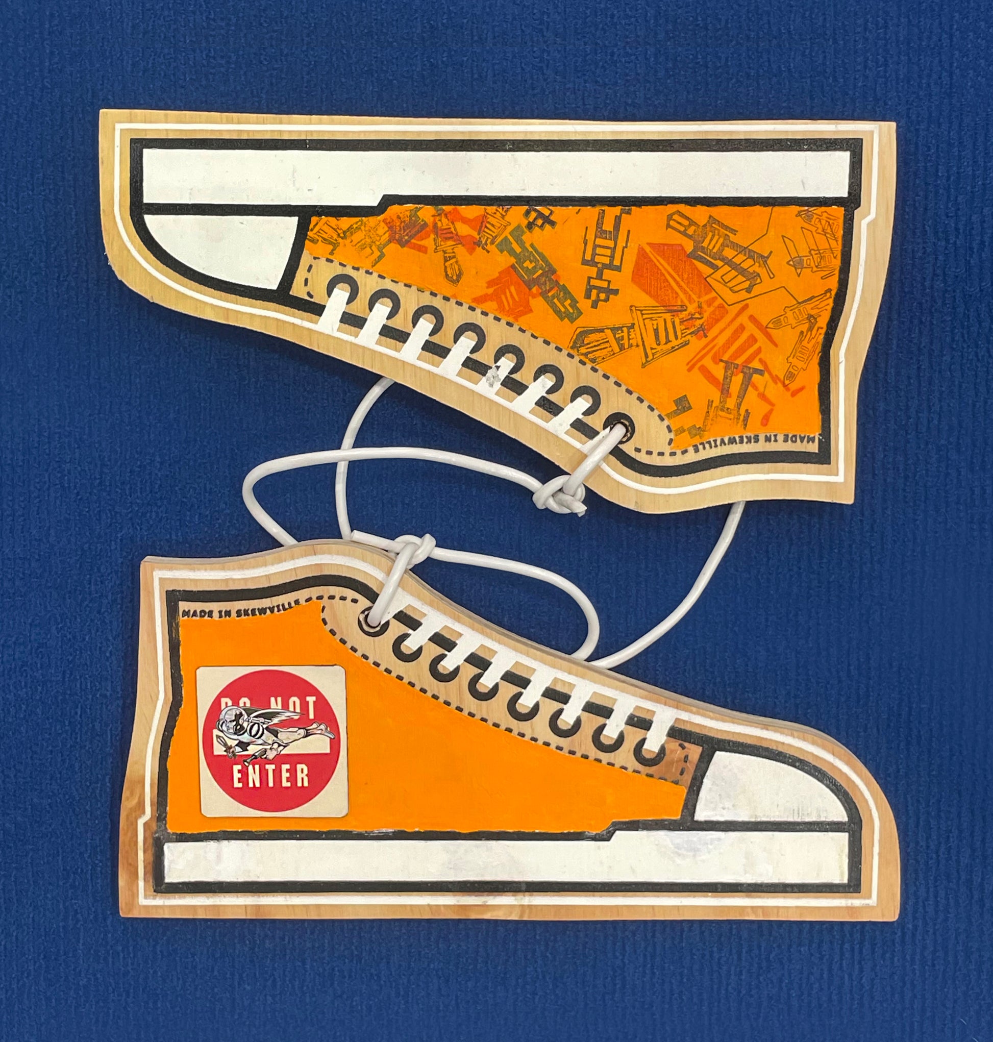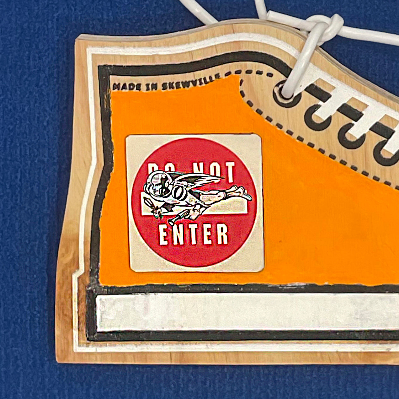 Silkscreen, Hand cut, drilled and laced by Skewville then Custom painted by Stikman