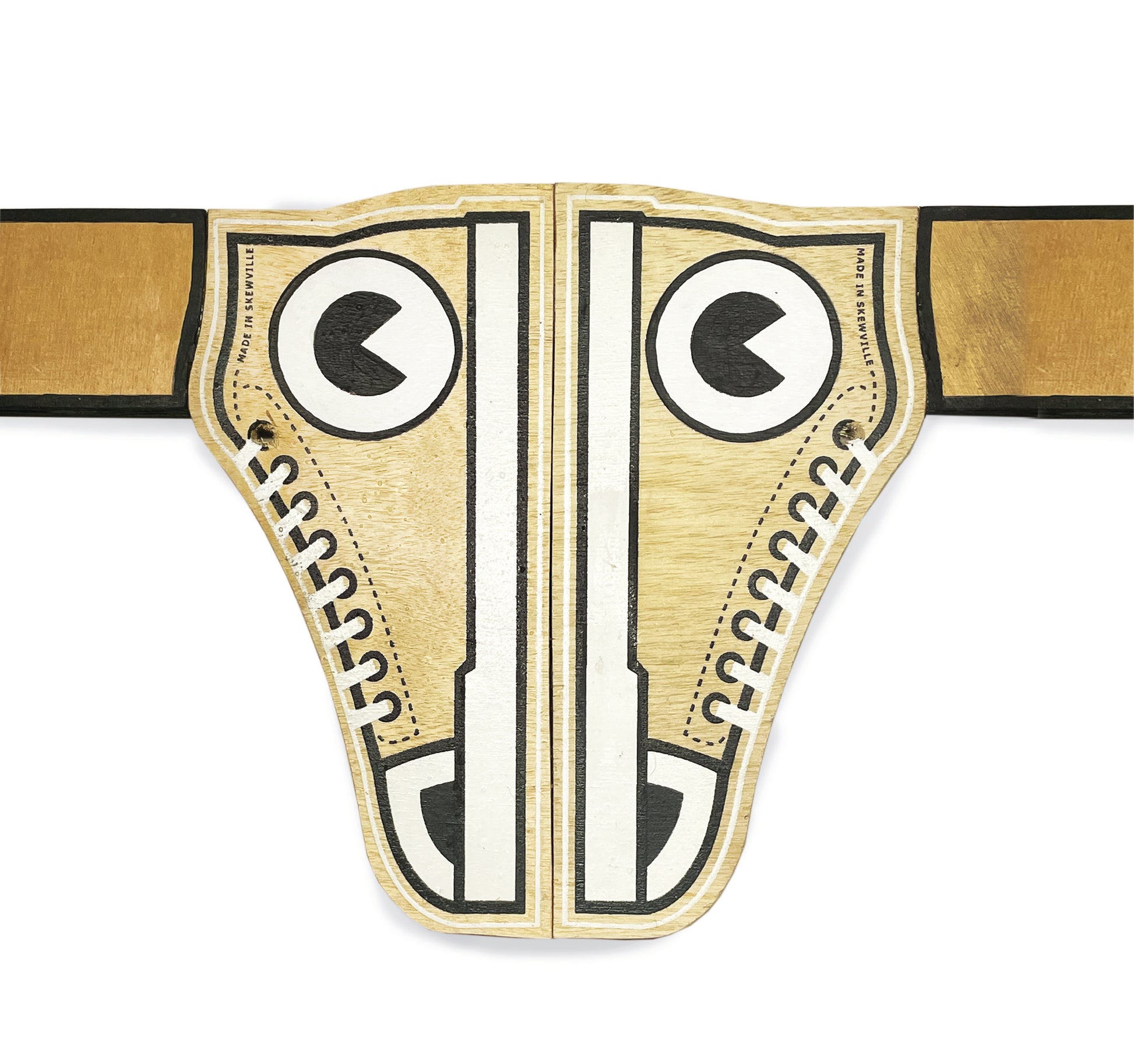 One Pair (Two double-sided wooden shoes total) of Artist customized Skewville Wooden shoes.
